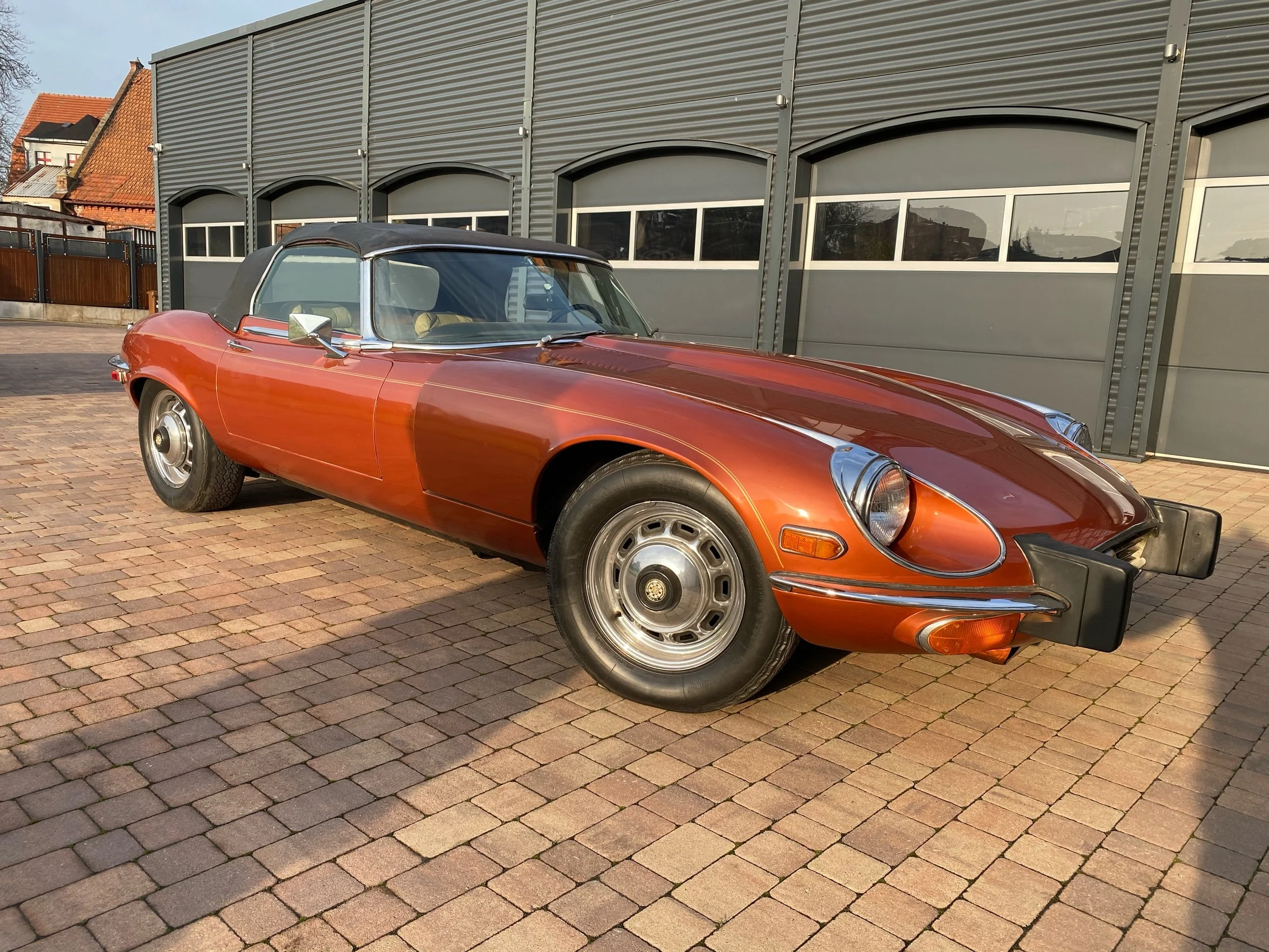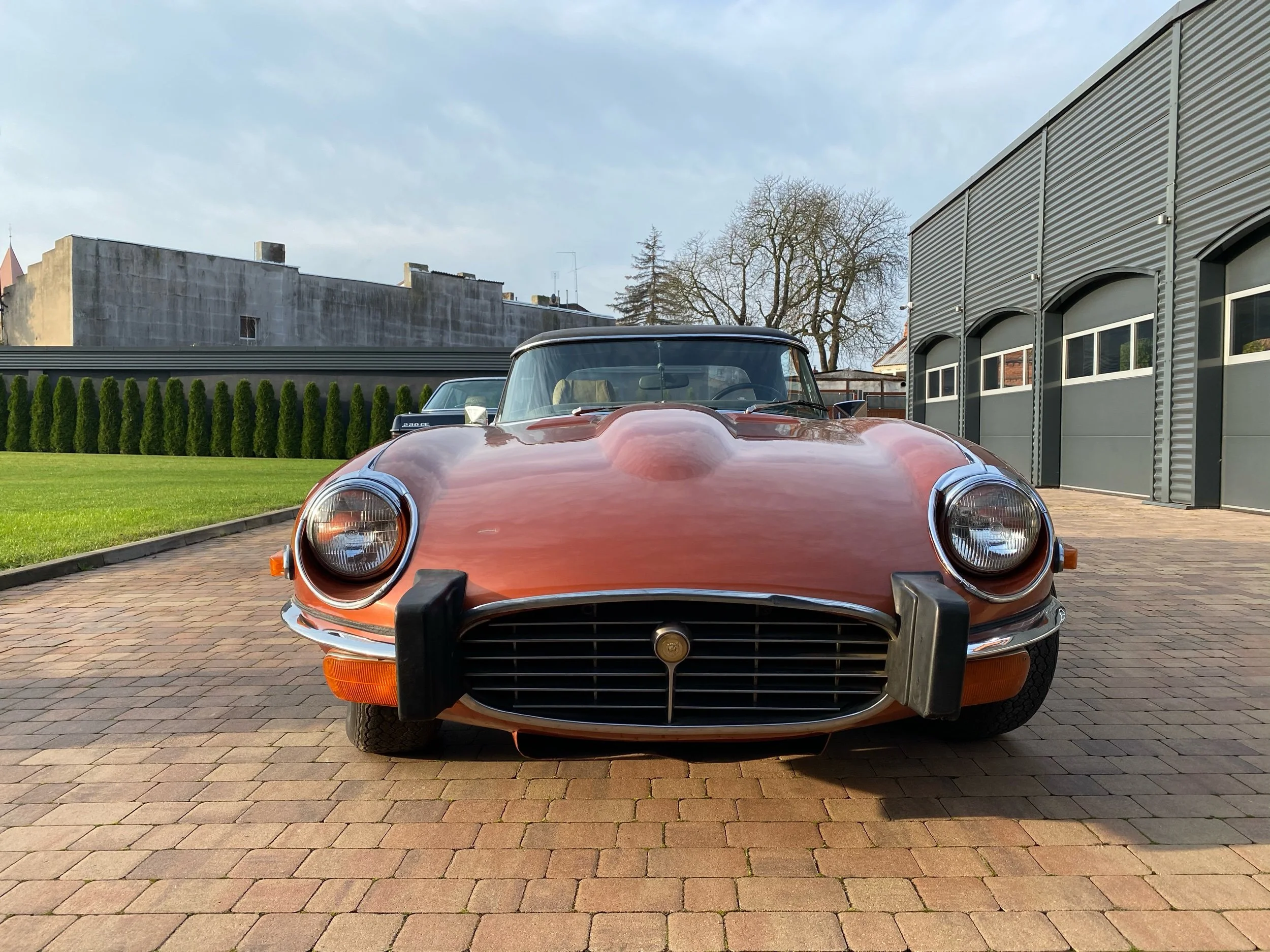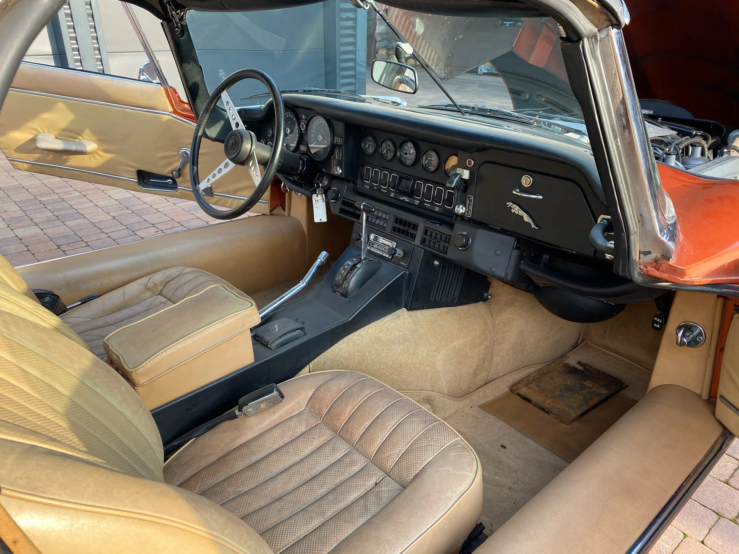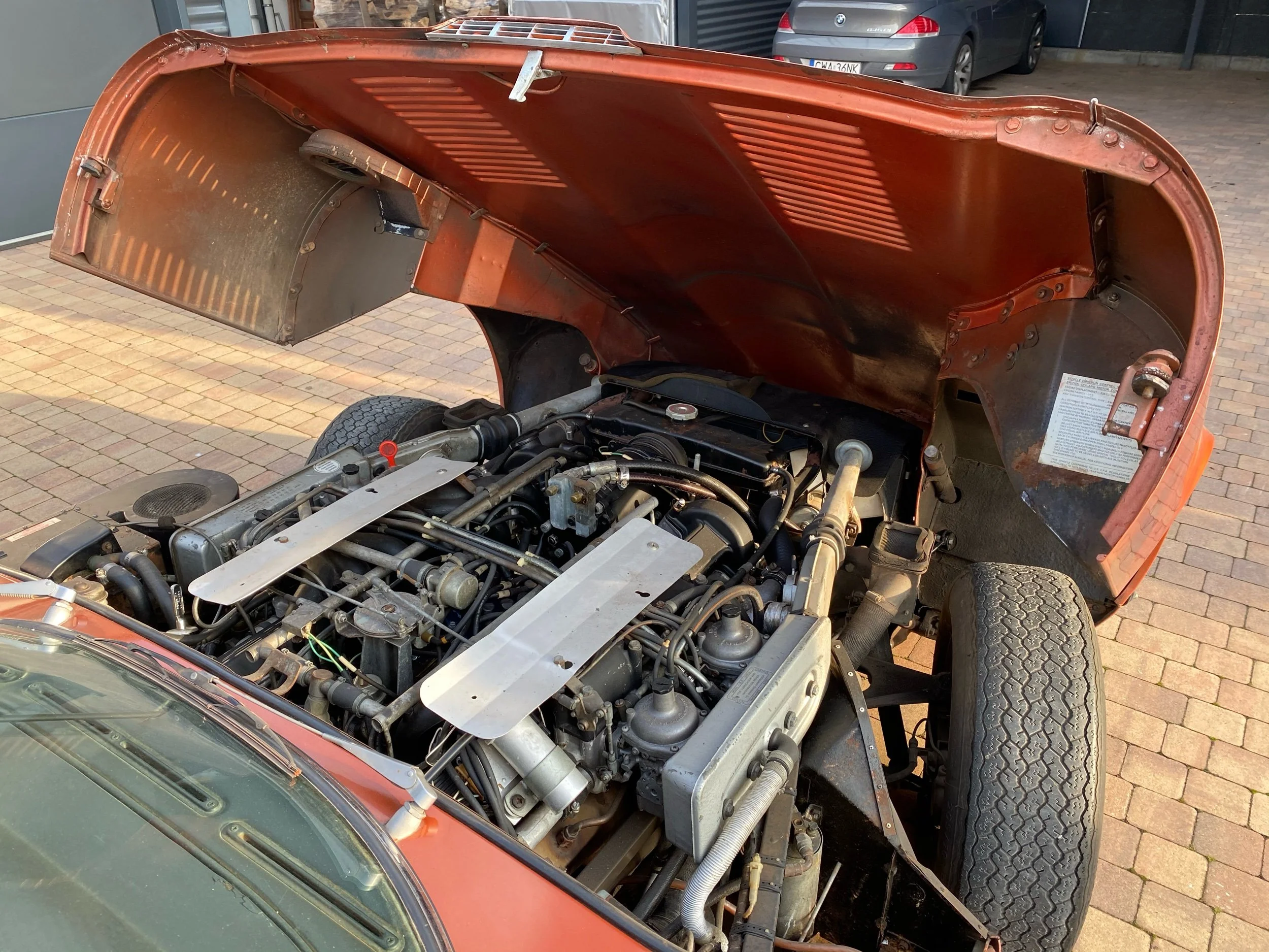 Jaguar E-Type V12, Baujahr 1973, in seltener Originalfarbe Orange, unrestaurierter Originalzustand. Der Wagen verfügt über den legendären 5,3-Liter-V12-Motor mit vier Zenith-Stromberg-Vergasern und klassischem Schaltgetriebe, was ihn sowohl klanglich als auch fahrdynamisch zu einem ikonischen Vertreter der britischen Sportwagenära macht. Die Karosserie zeigt authentische Patina, Spaltmaße und Blechsubstanz sind stimmig und unverändert, mit typischen Alterungsspuren eines unberührten Fahrzeugs. Innenraum mit originalem Leder, leichtem Abrieb und unverfälschtem Charme. Matching Numbers und originale Fahrgestellnummer vorhanden. Fahrwerk, Bremsanlage und Aufhängungen entsprechen dem Werksstandard, Fahreigenschaften klassisch straff, mit dem charakteristischen V12-Drehmomentverlauf. Ein ideales Sammlerfahrzeug für Puristen, die die Aura eines authentischen, nicht restaurierten E-Type schätzen und den besonderen Wert der Originalsubstanz erkennen.